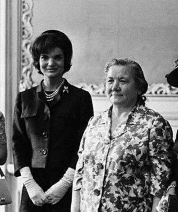 На этой этой фотографии - Нина Кухарчук (Хрущева), жена Никиты Сергеевича. Простая деревенская баба, в простенькой, нелепой одежонке. Слева - несравненная, загадочная, элегантная Жаклин Кеннеди.